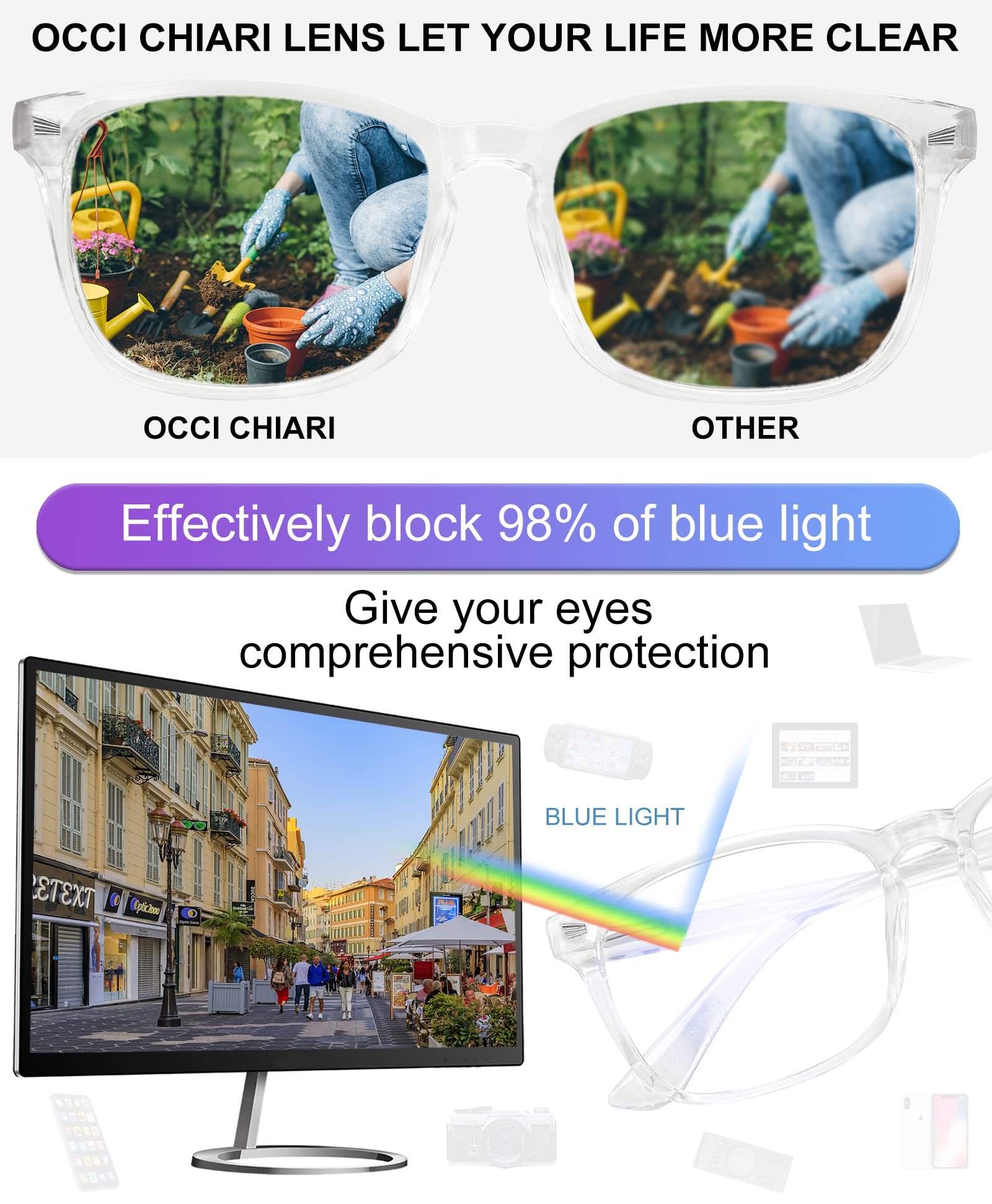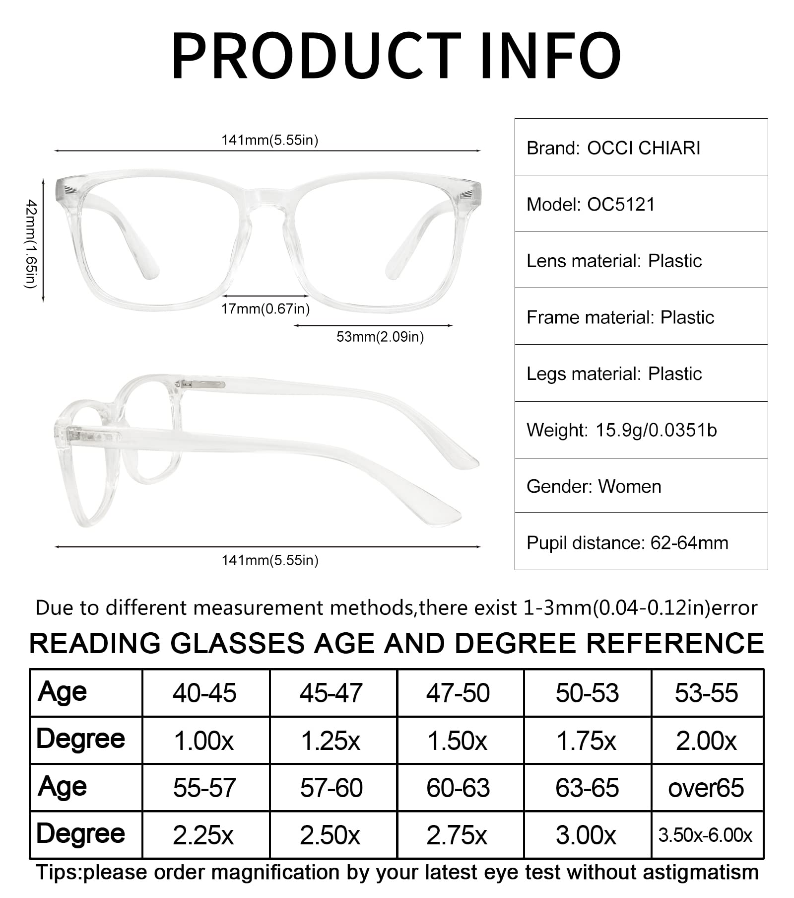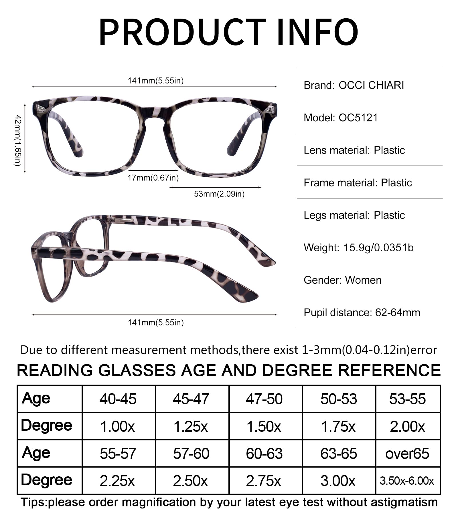 Blue Light Blocking Rectangle Reading Glasses Women Oversized Reader OC5121