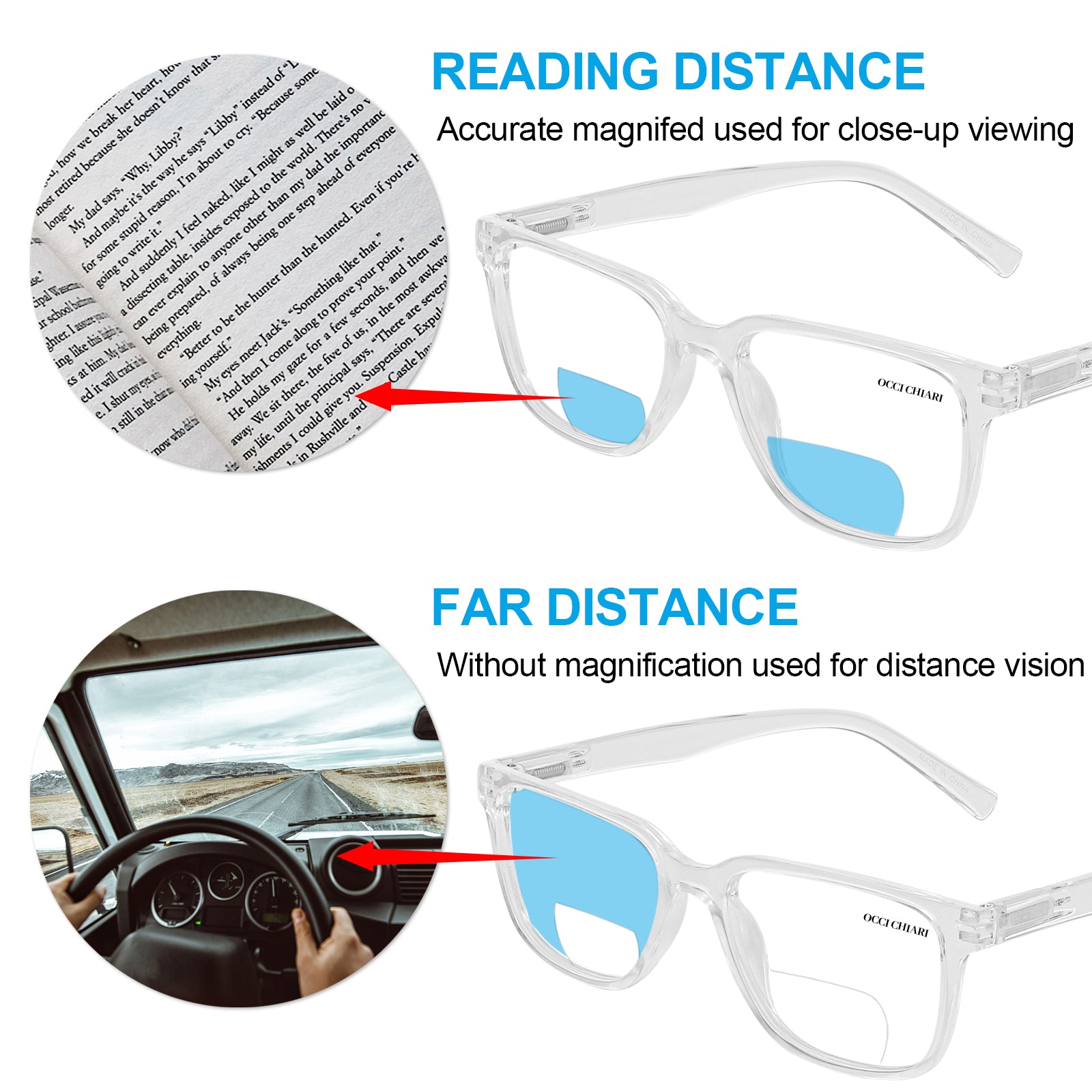OCCI CHIARI Bifocals Reading Glasses for Men,Transition Square Eye Protection Readers OC5213BB