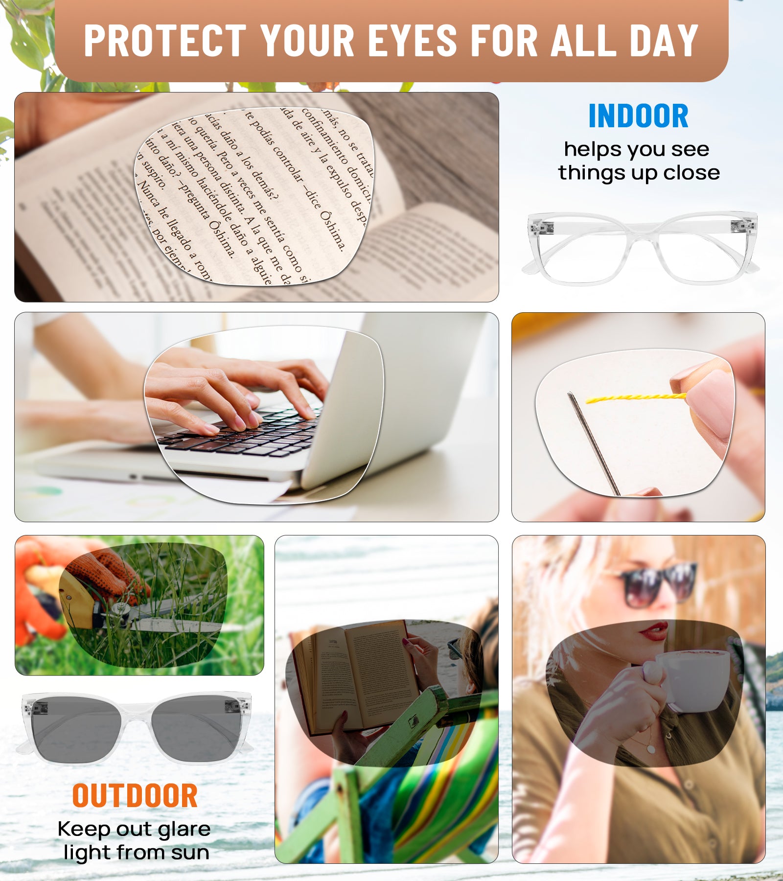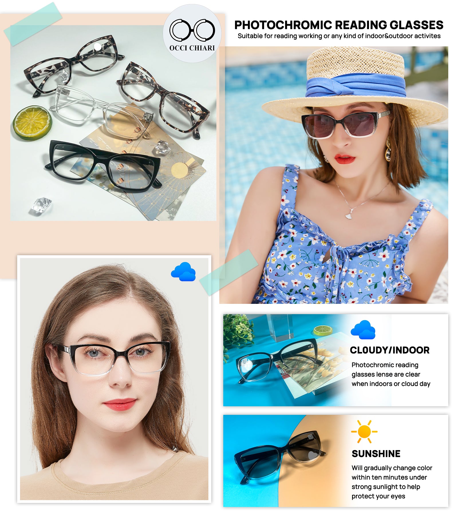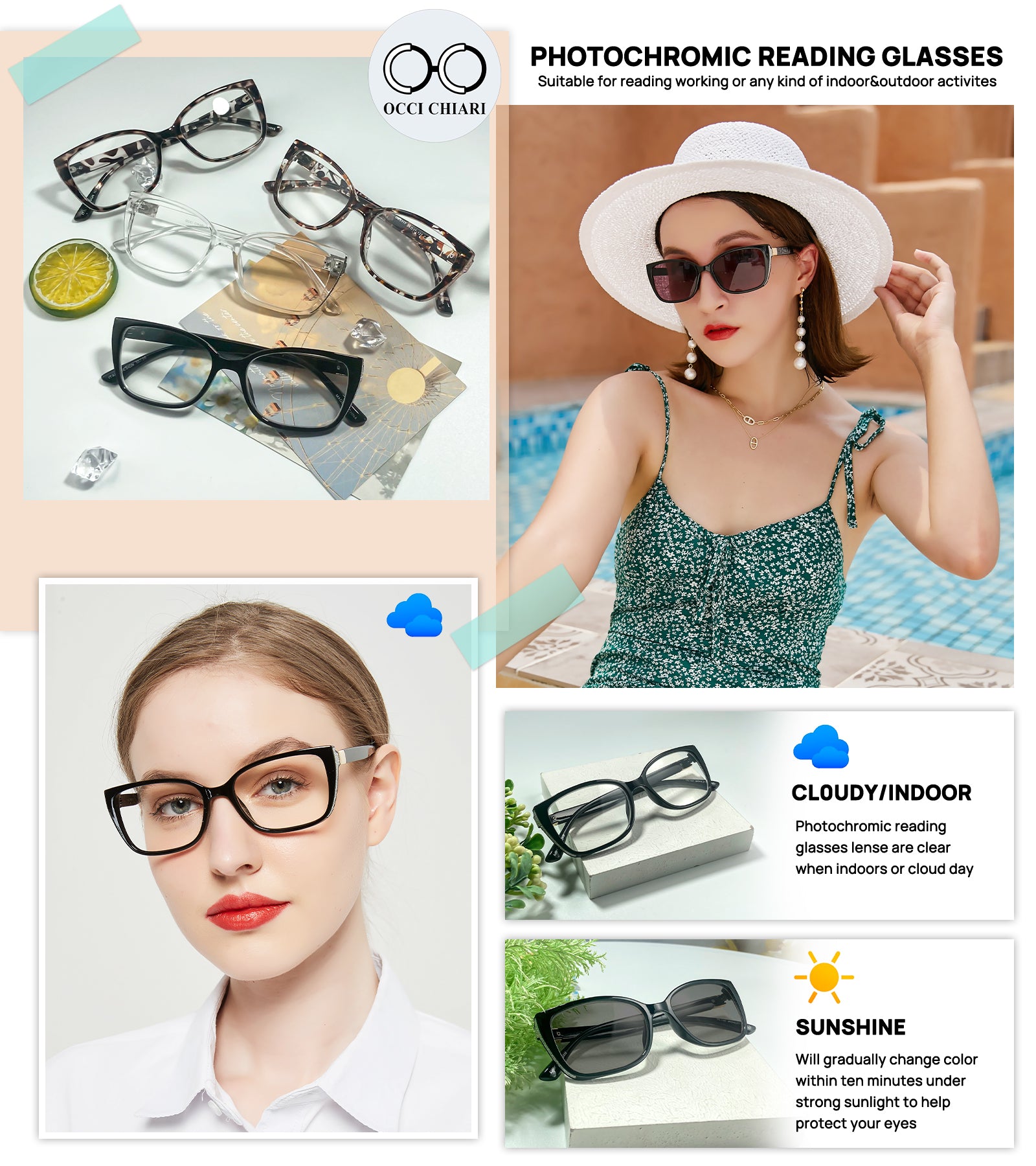 OCCI CHIARI Blue Light Blocking Photochromic Reading Glasses Large Sunglasses Readers POC5117