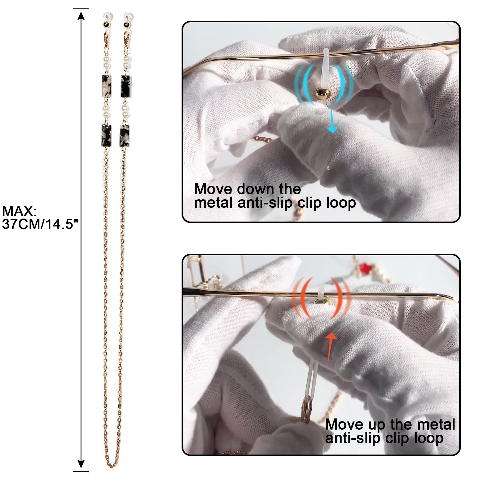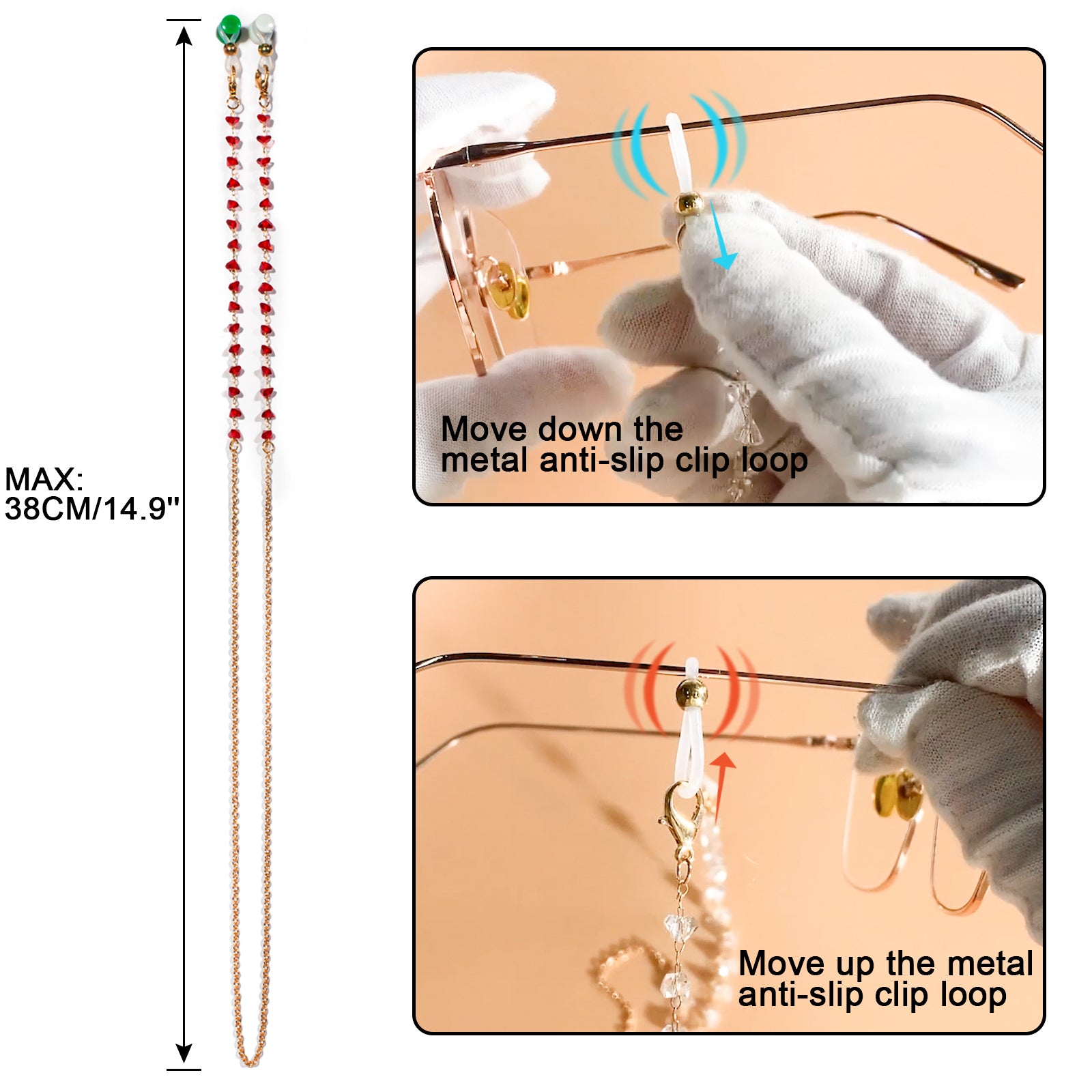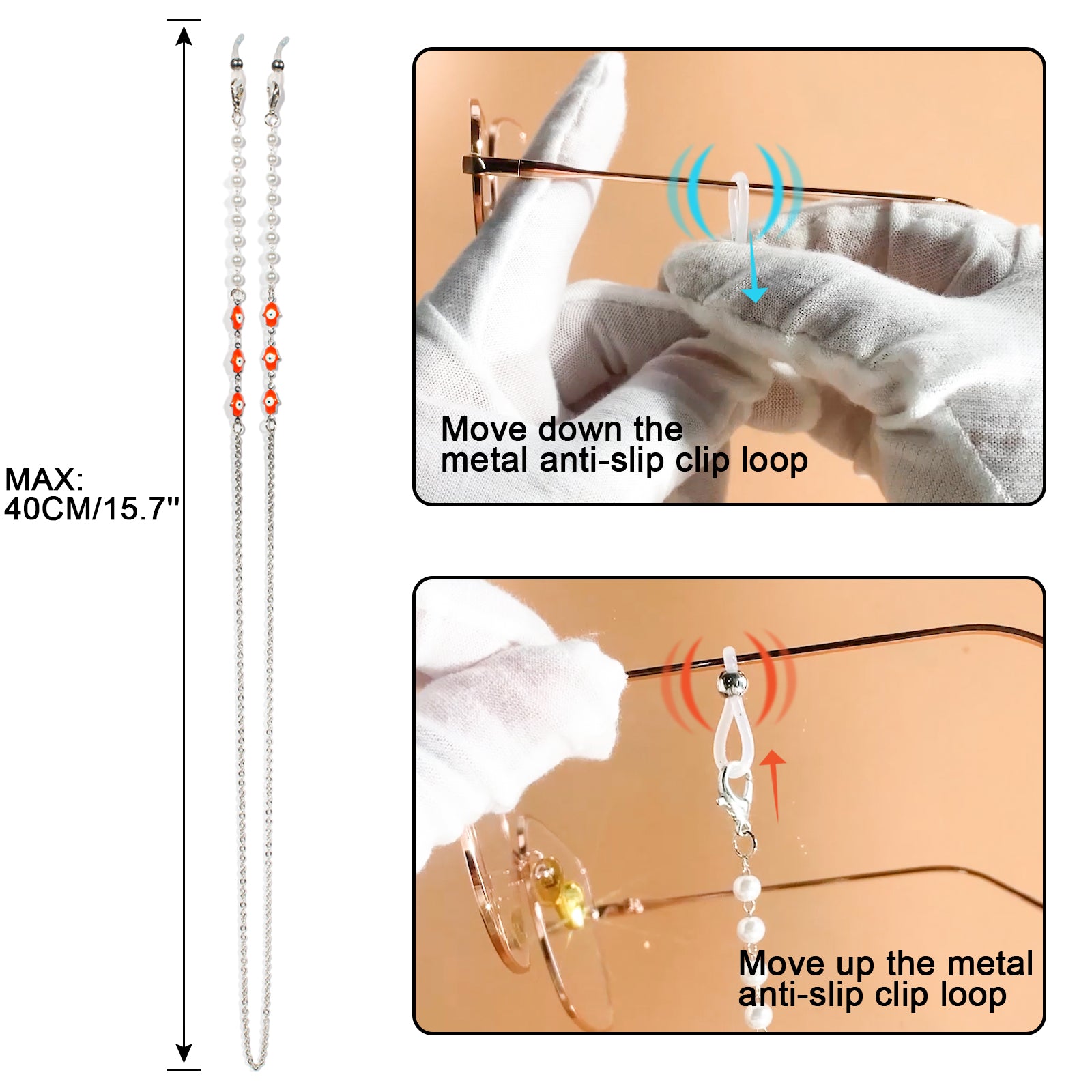Non-Slip: These eyeglass chains are strong and durable, lightweight, and not heavy on your neck. both ends of the glasses holder strap have adjustable lobster clasps with metal coils, so that they can make it easy to attach to your glasses easily and long enough for you to hang on your chest or behind your neck