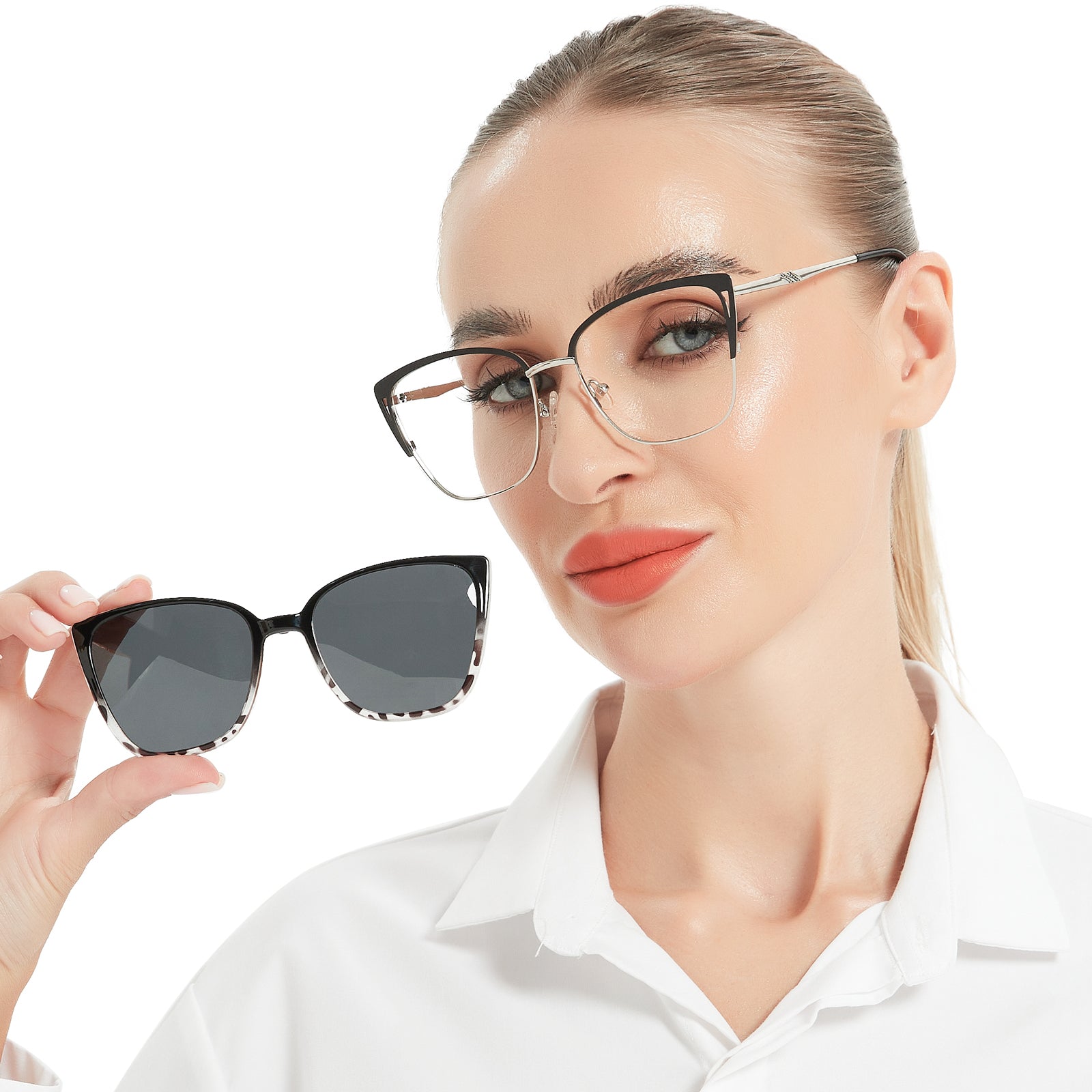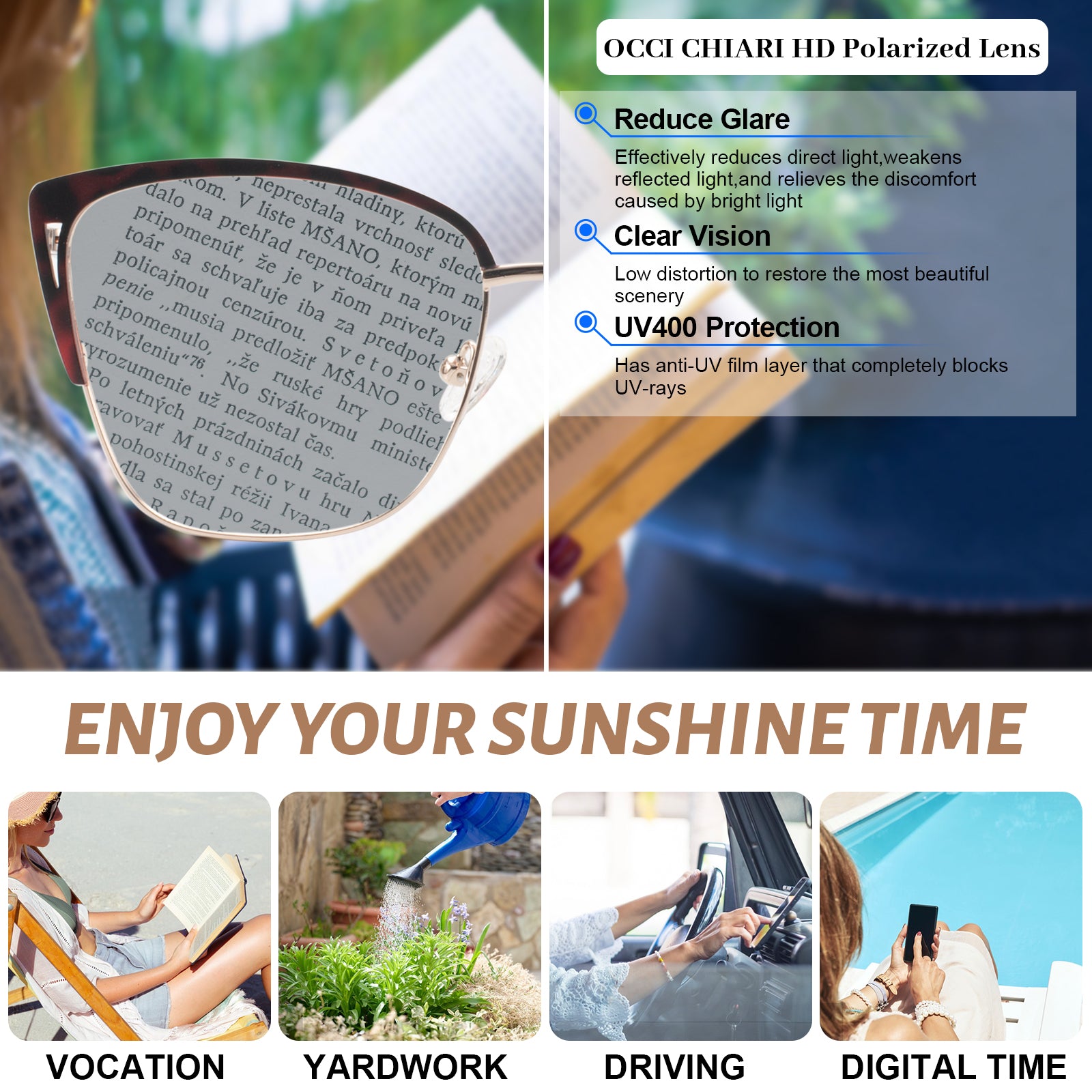 OCCI CHIARI Magnetic Reading Sun Glasses Clip on Sunglasses Readers for Women Fashion Cat Eye Polarized Frame OC5295M