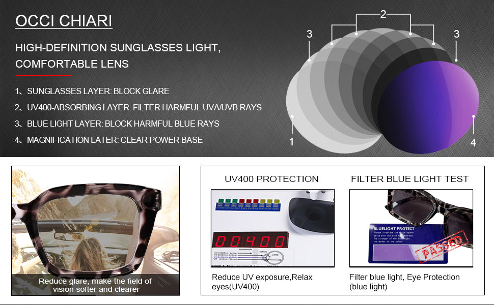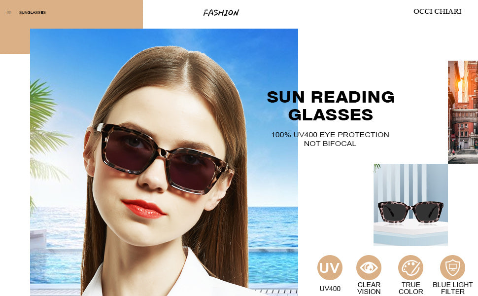 OCCI CHIARI Sun Reading Glasses for Women Large Sun Readers Blue Light Filter
