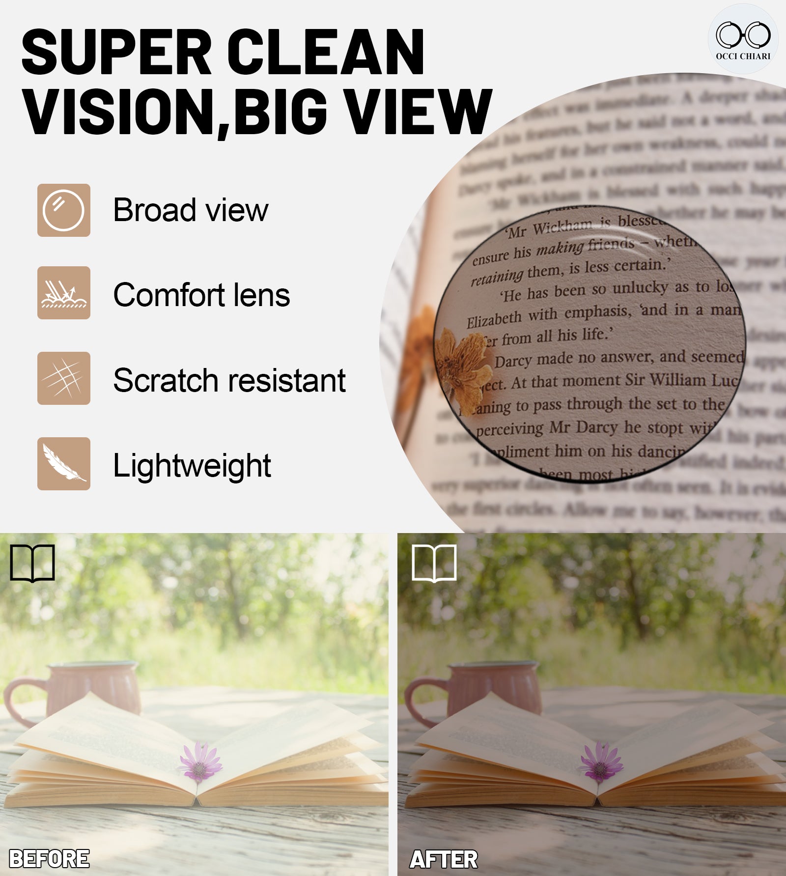 • Great of value: 1 sun readers. 2 the portable spectacle bag and soft glasses cloth (to help protect your glasses from dirt, fingerprints and from breaking),3. black glasses rope 4. With a doule-head screwdriver, you tighten the glasses frame. 100% replacement or refund service; if any damage occurs to the product, please contact OCCI CHIARI team to solve the problem quickly and effectively