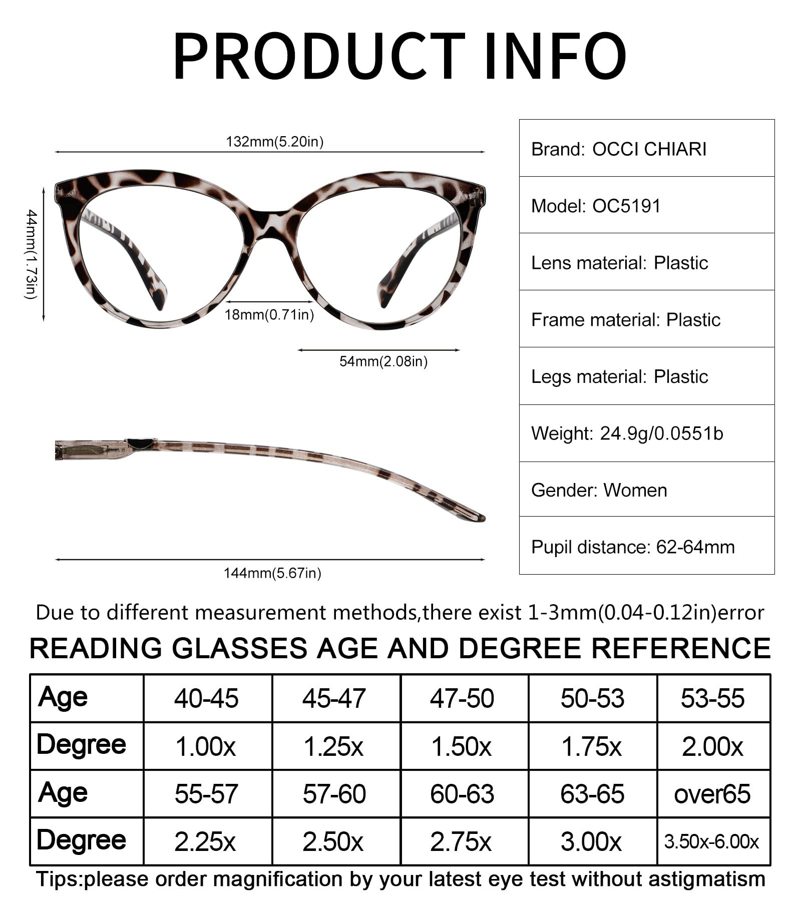 OCCI CHIARI Women's Readers Sturdy Reading Glasses with Metal Spring Hinge OC5191